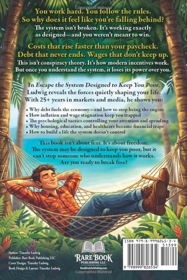 You're not imagining it. Modern society wasn't built to help you thrive—it was designed to keep you busy, in debt, distracted, and dependent. In Escape the System Designed to Keep You Poor, Timothy Ludwig exposes the hidden mechanisms shaping your daily life. Across money, media, healthcare, education, technology, food, and even psychology, this book uncovers the powerful incentives that quietly control how you earn, spend, think, feel, and struggle. This is not a political book or a conspiracy book. It's a clear, accessible breakdown of how today's systems actually function—and how ordinary people get trapped inside them without ever realizing it.